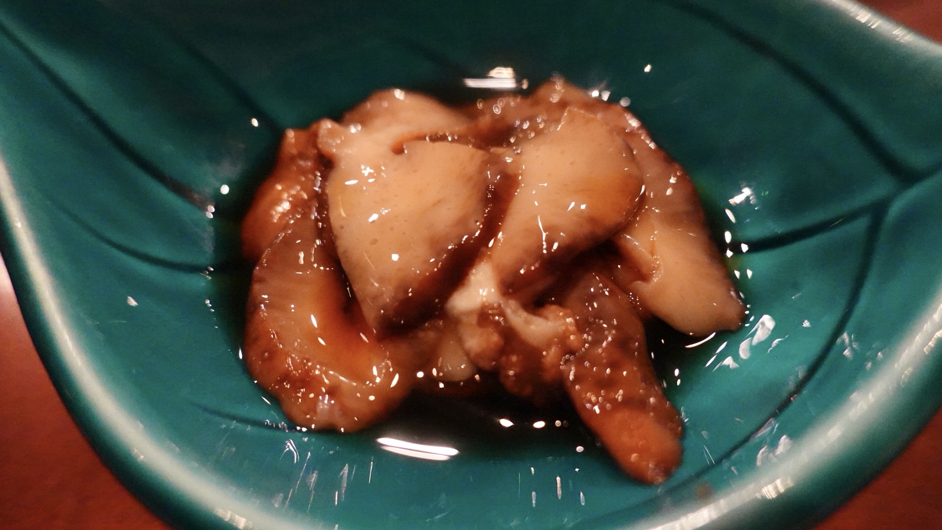 鮑。歯応えはあるがそんなにストレスのある硬さではない。