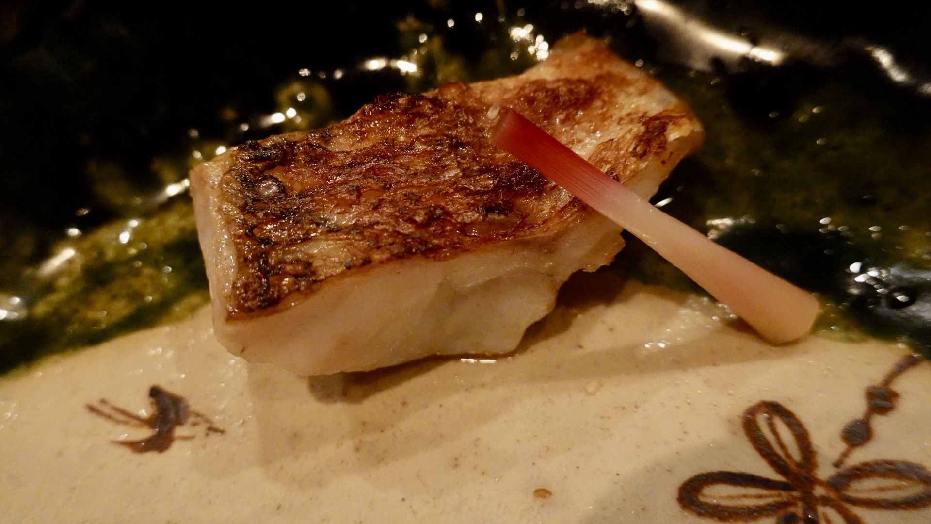 〆ない三重の鯵、針生姜。しっとりとしてみずみずしさがある。普通にお造りを出すよりもよっぽど手間がかかってる。