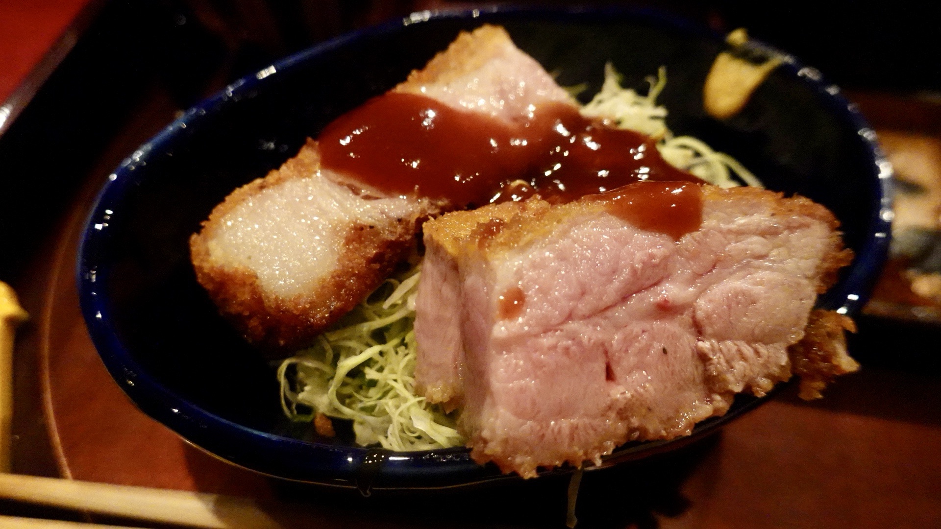 この日は、自分の会社名にちなんで日本料理店で「とんかつ定食」を出してくれた。