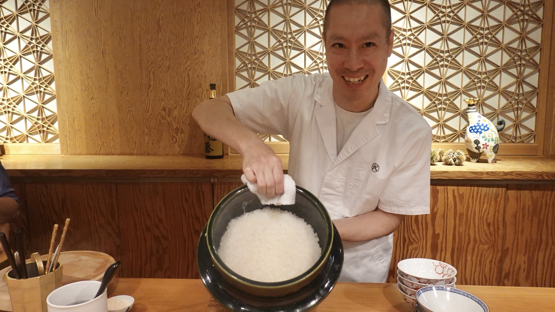 美智子さん(女将さん)の鳥取の実家で育てられた「よしあつ米」をメインに据えた前代未聞のコース。