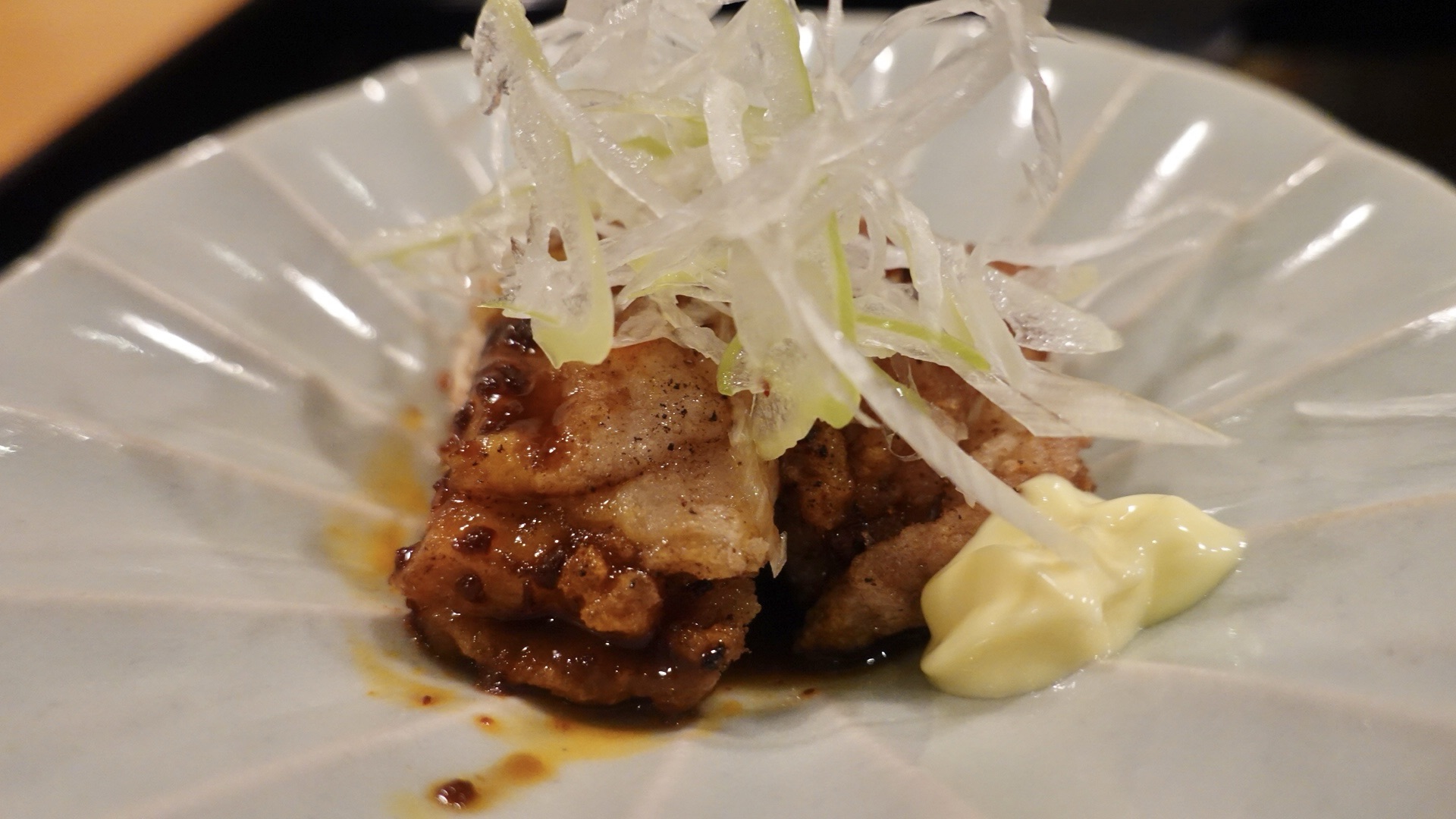 よだれ鶏のようなピリ辛チキン。マヨネーズがまた旨いのなんの。