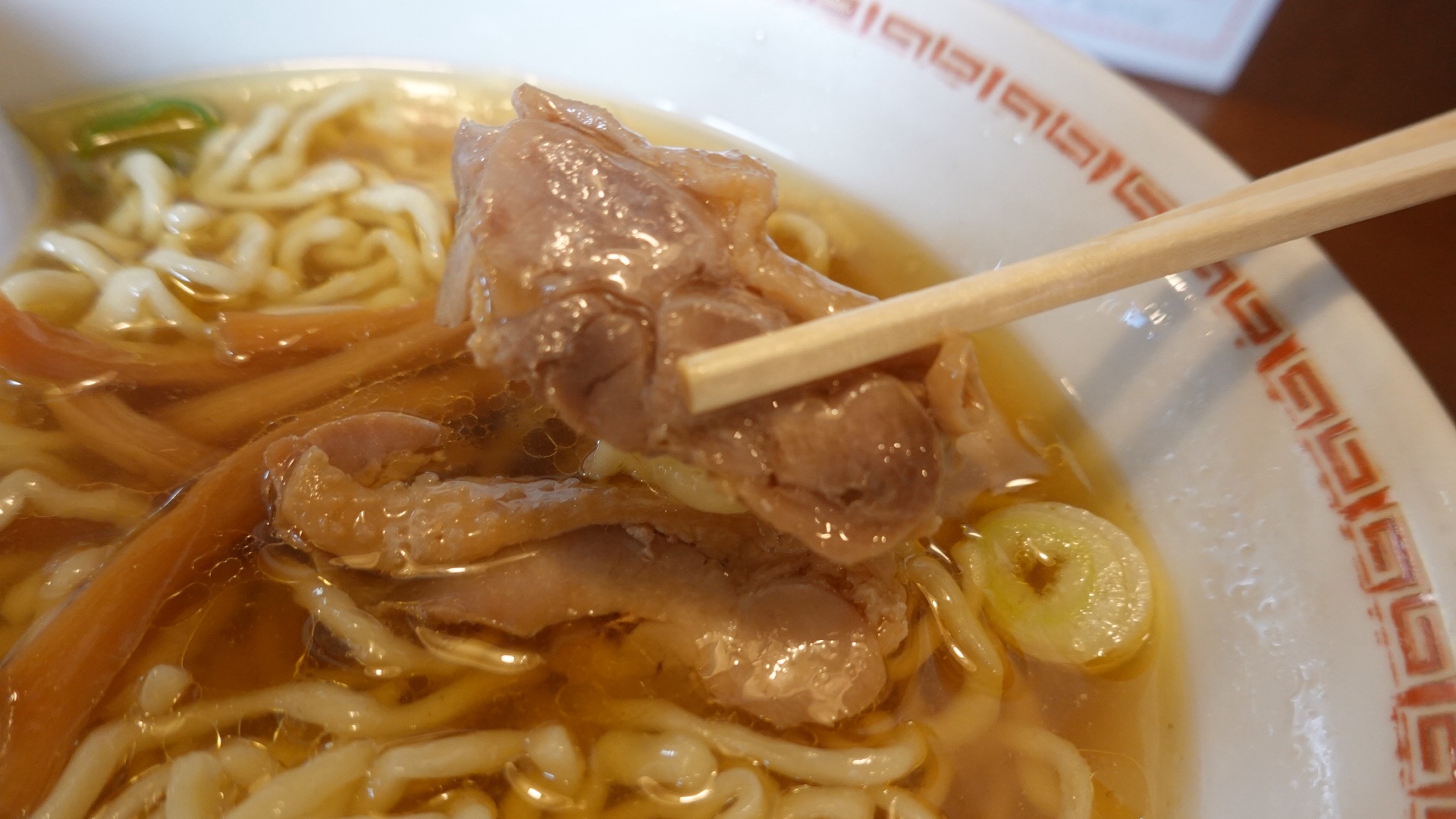 鶏チャーシューはなかなかハードな、つまりだいぶ硬い肉質で味付けもラーメン用なのかかなり濃いめ。