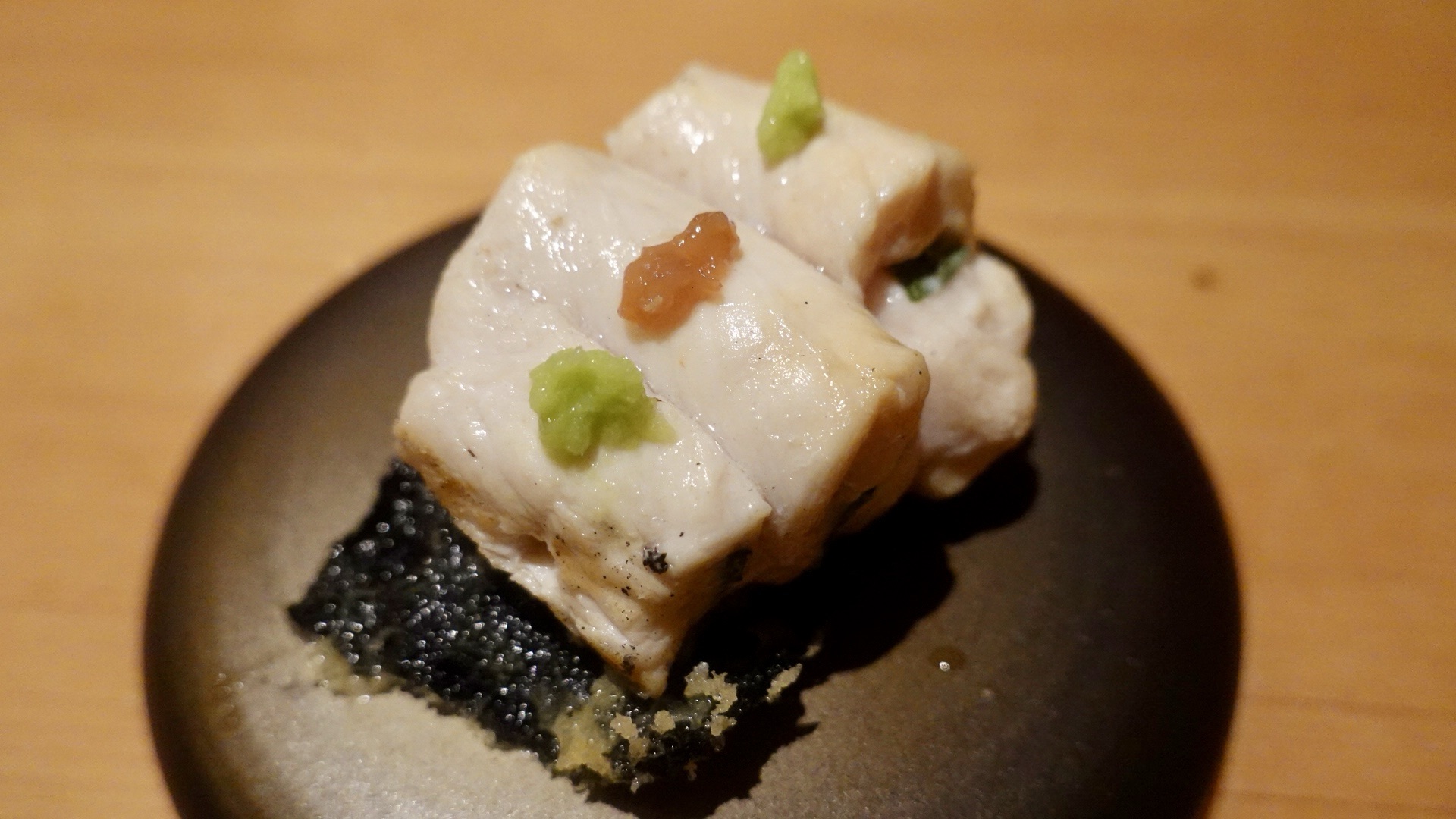東京ではあまりないような串打ち、なにより「にかわ」でも感じたことだがこの名無し地鶏が旨い。脂はガッツリ乗ってるがクドさはなく甘い。