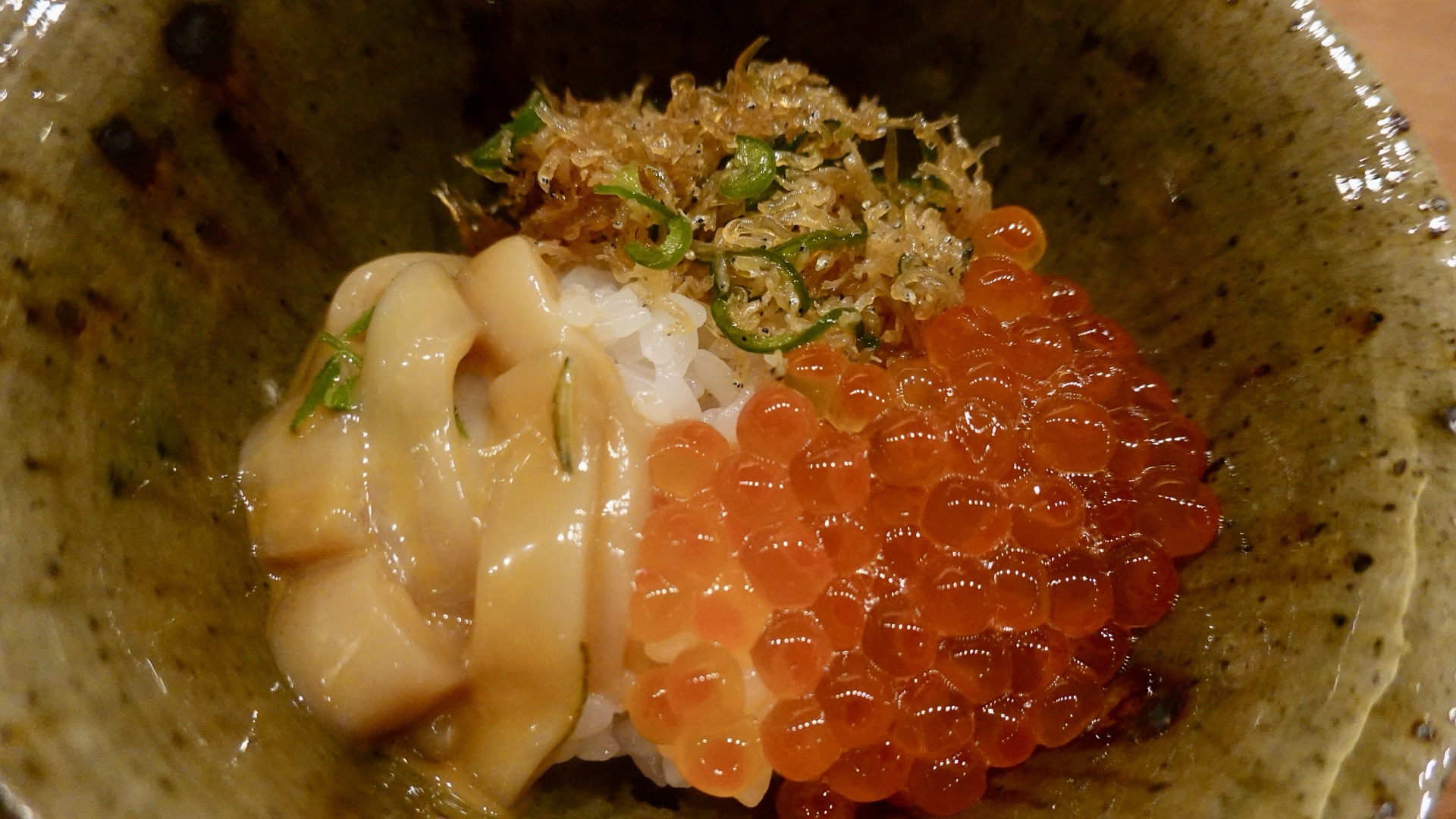 玉子茸、しゅうり貝、雑炊、銀杏。