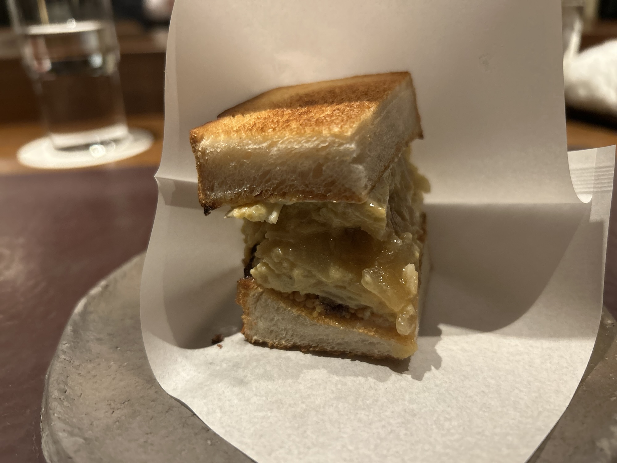 スペインのサンドウィッチ。天草の赤雲丹、あいだにバター。