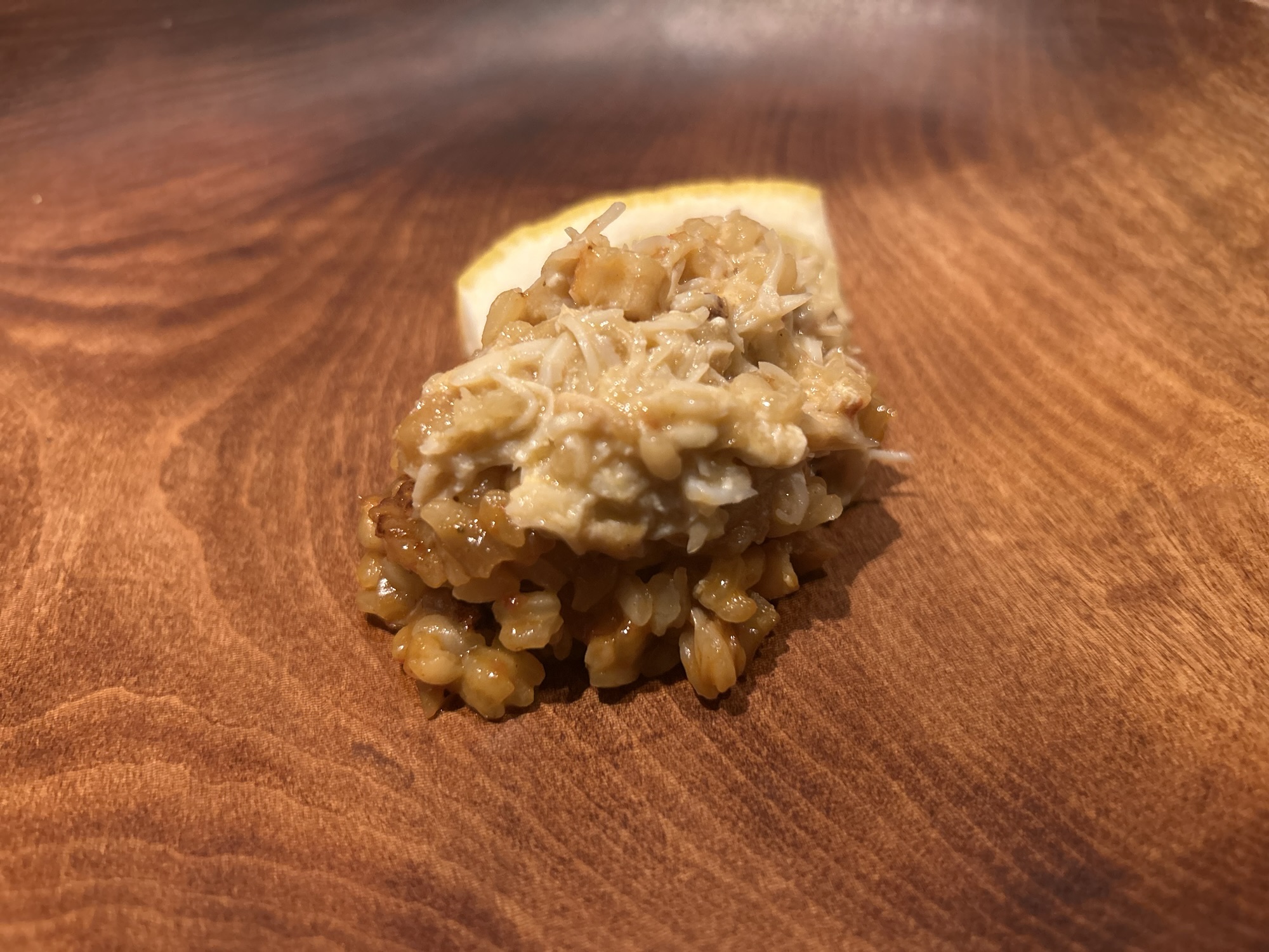 肝による苦味、濃厚な旨味、脂、そしてレモンによる酸味。塩加減もベストで五味によるバランスが秀逸です。