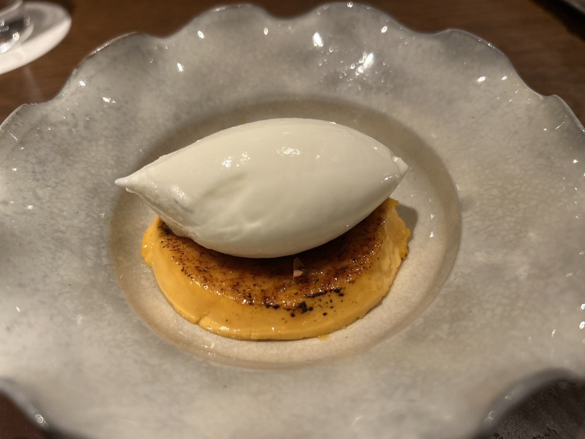 キャラメリゼしたイチジクの上に山羊のミルクのアイスクリーム。