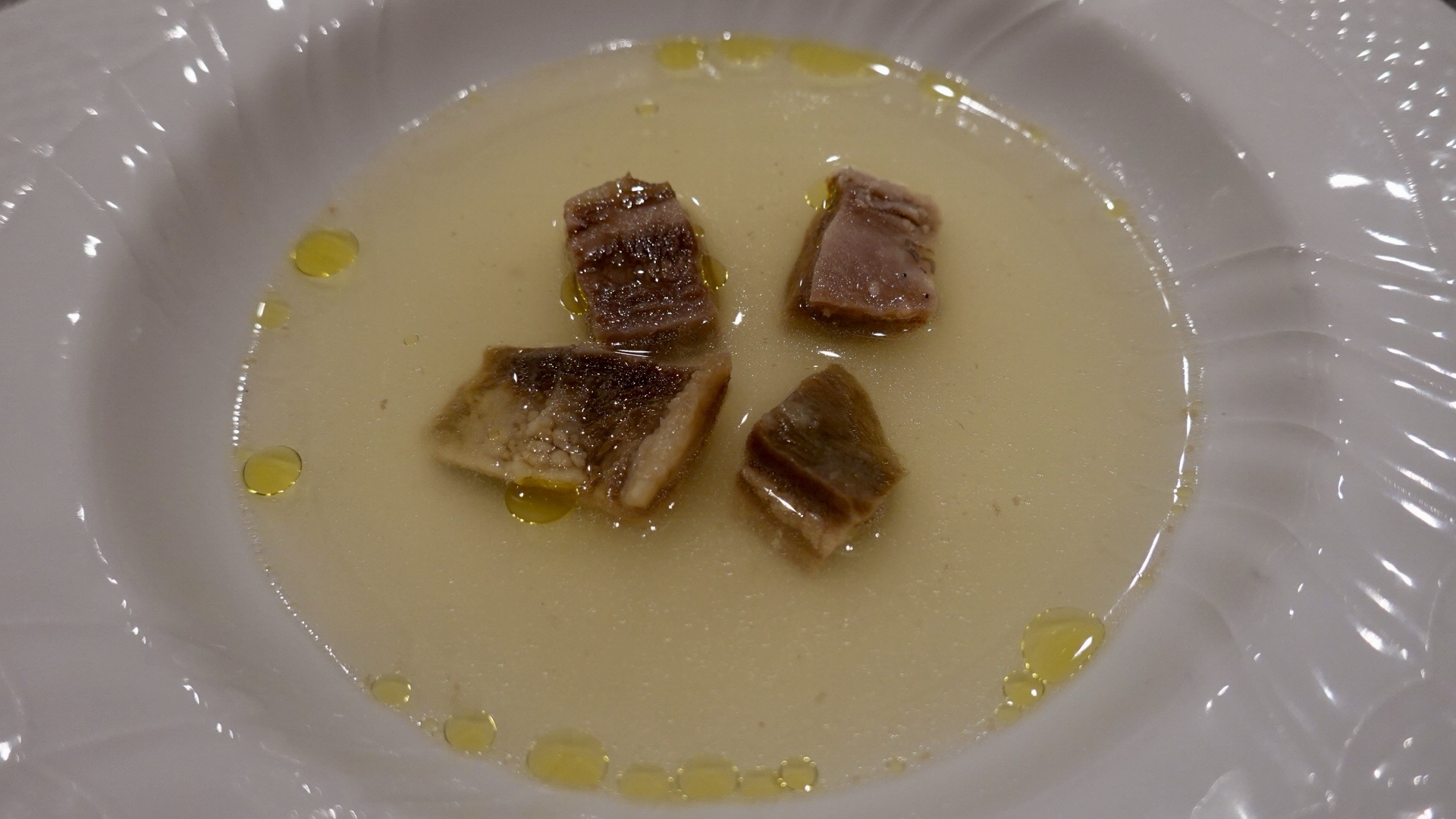 Burrida sardaは胡桃、白ワインビネガー、猫ざめで作る料理。