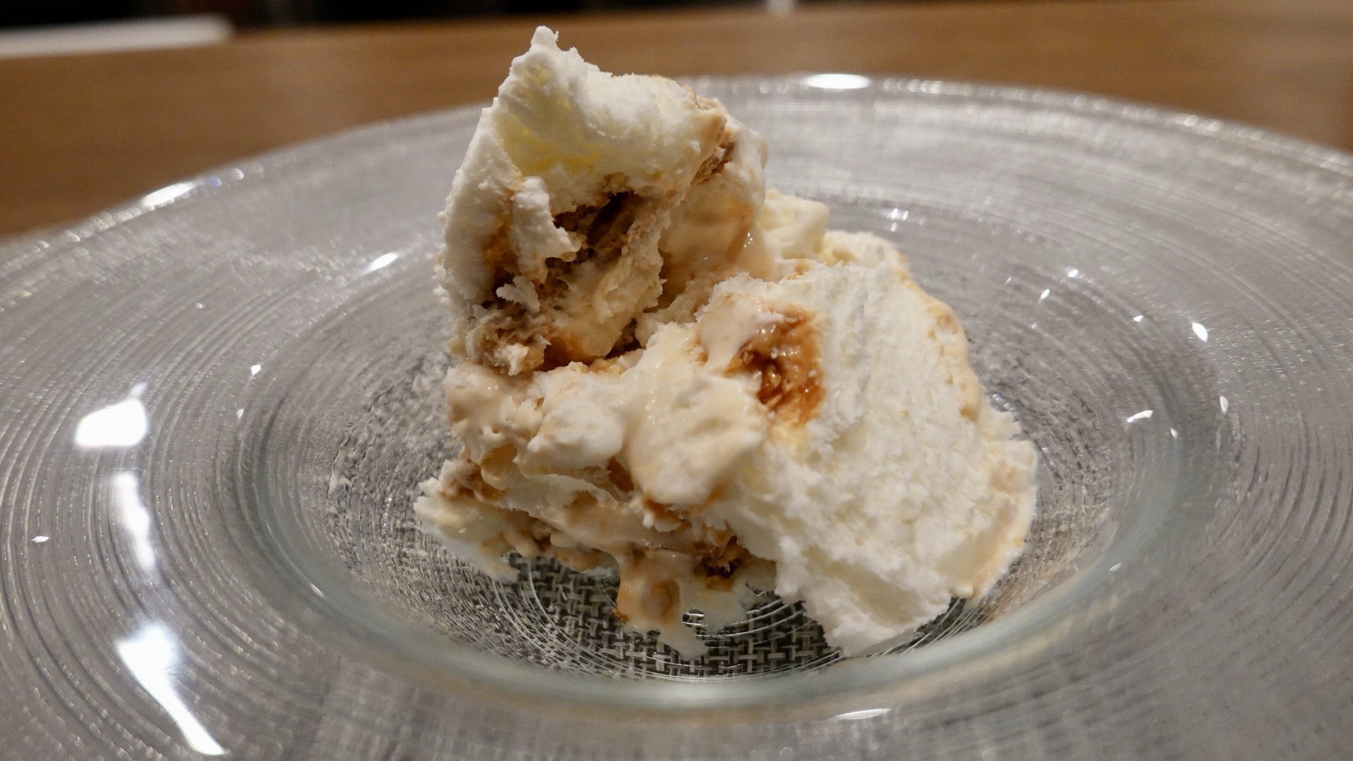 アーモンドキャラメリゼにグラッパをかければ芳醇な香りが絡み合う。