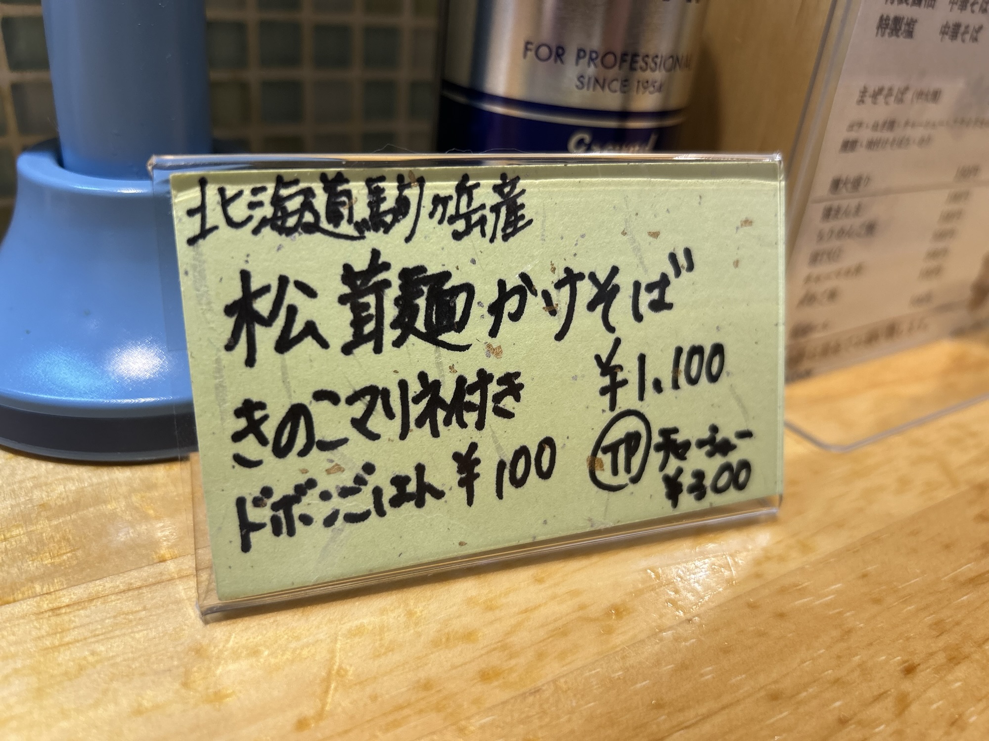 麺は白くてモチっと粘り気がある独特なもの。なんと北海道駒ヶ岳産の松茸を麺に練り込んでいるんだとか。