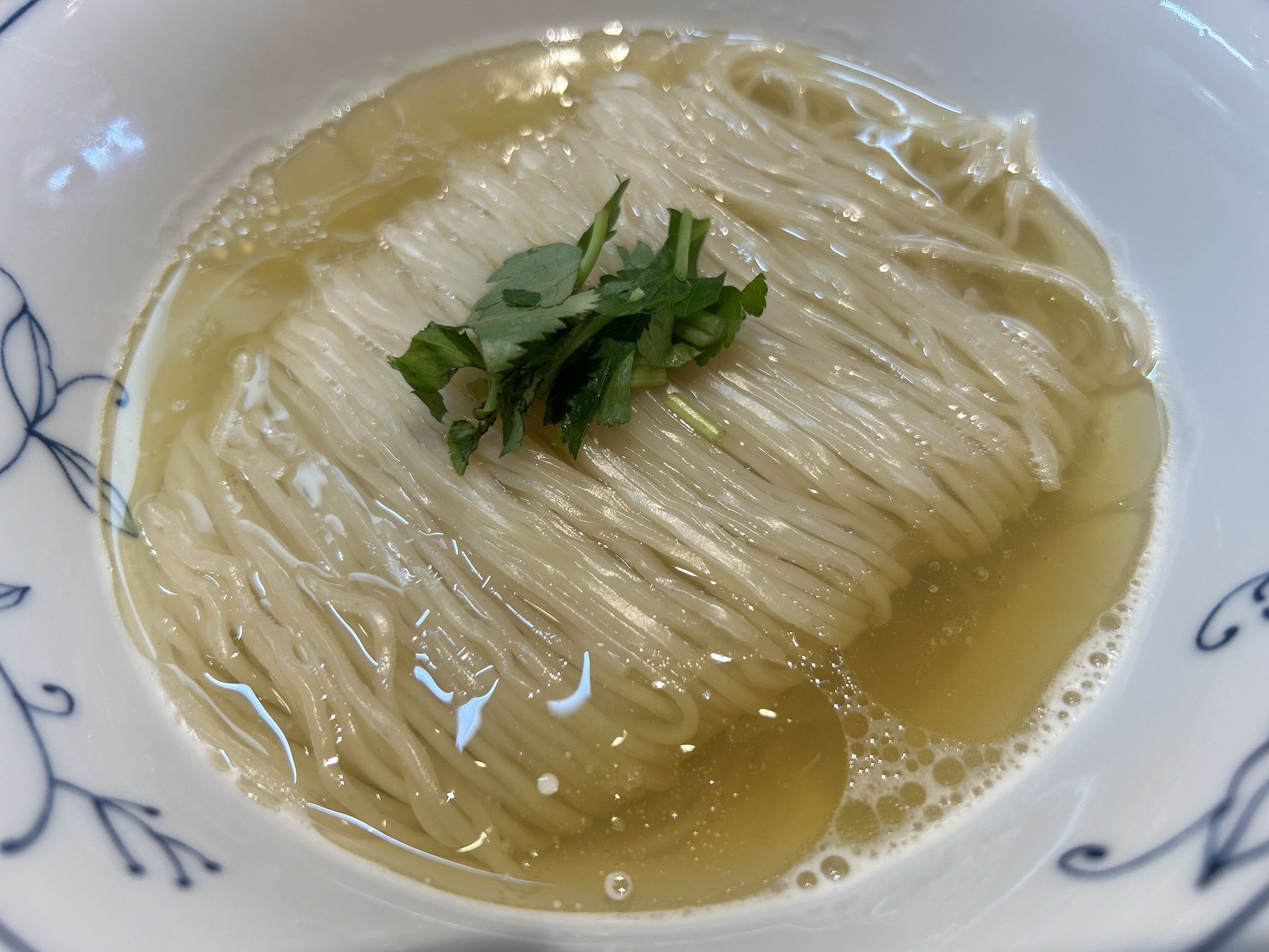 スープ:魚介ベースの透明感ある清湯。水の使用にもこだわり、飲むごとに旨味がじんわり広がります。動物系の下支えも感じられ、食べる人を飽きさせません。