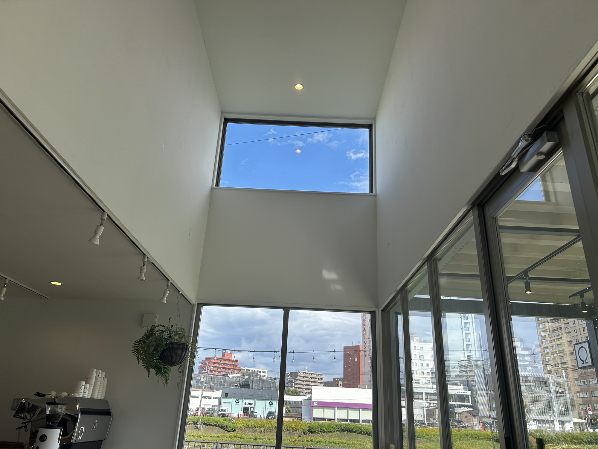 大きな窓から自然光がたっぷり差し込み、晴れた日には空の青さがそのまま店内に映り込むほどの開放感があります。
