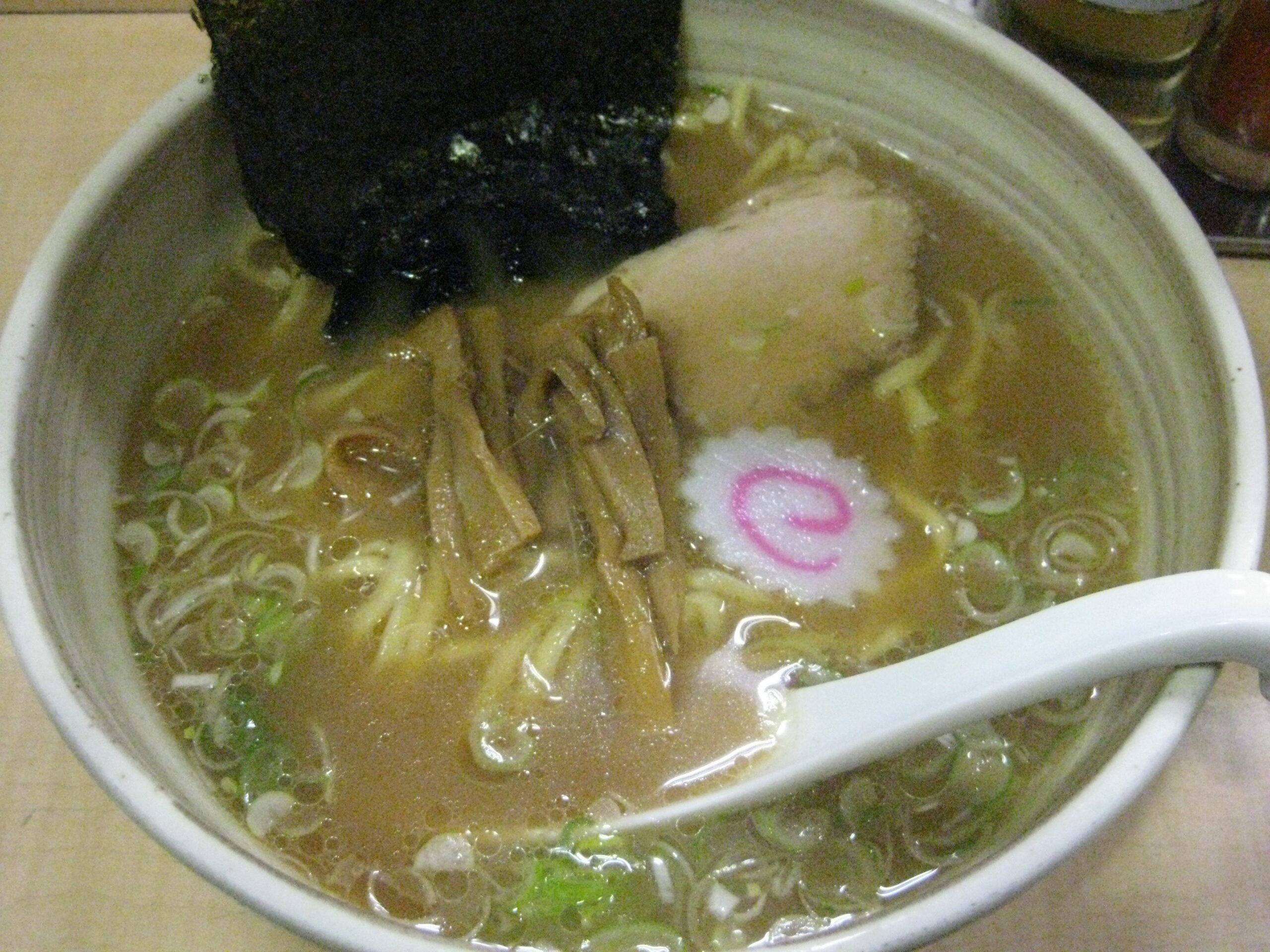 具材はチャーシュー、ナルト、めんま、葱、海苔。