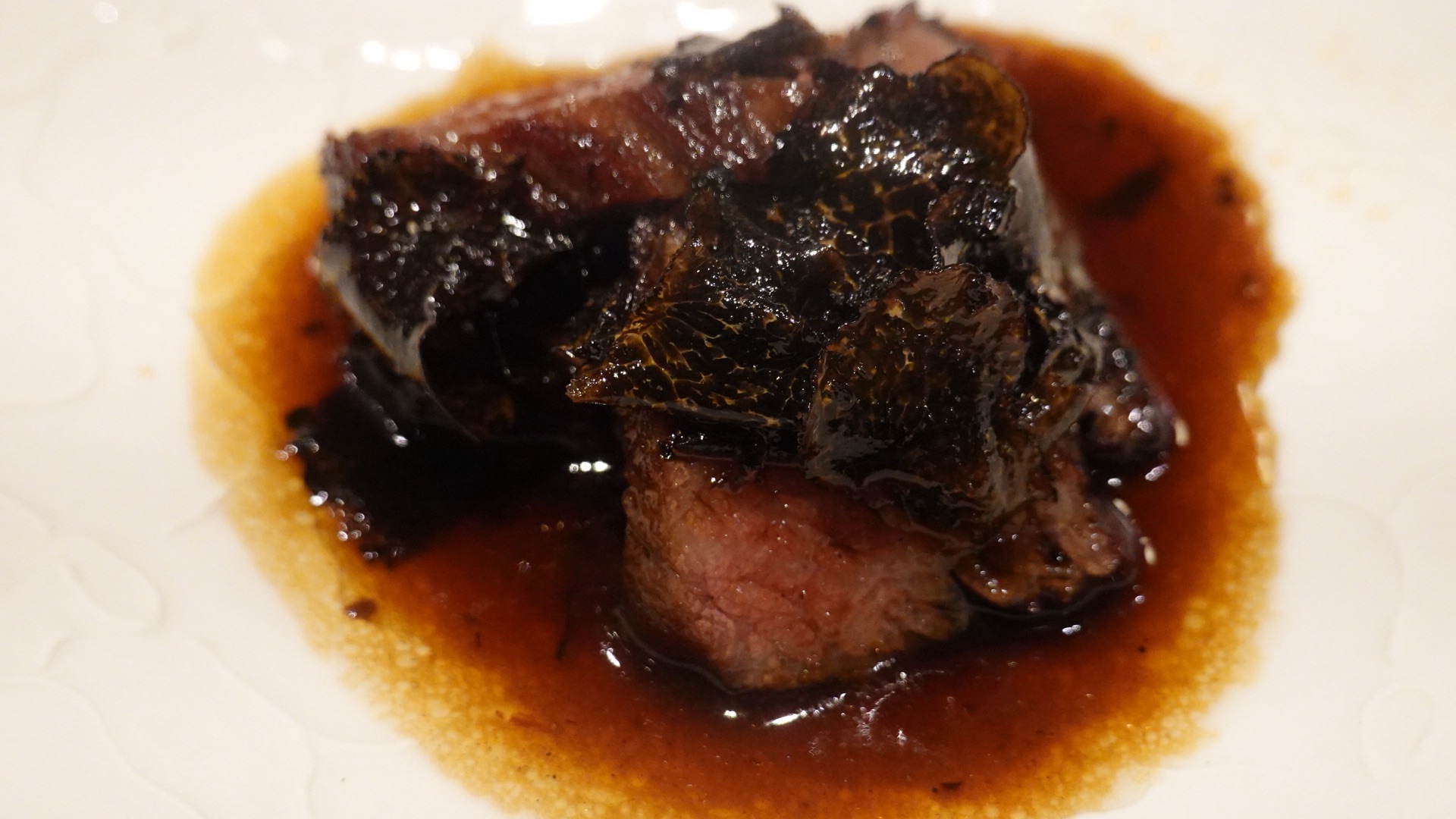 ワイン、醤油で作ったタレにたっぷりと垂らしトリュフを削って。