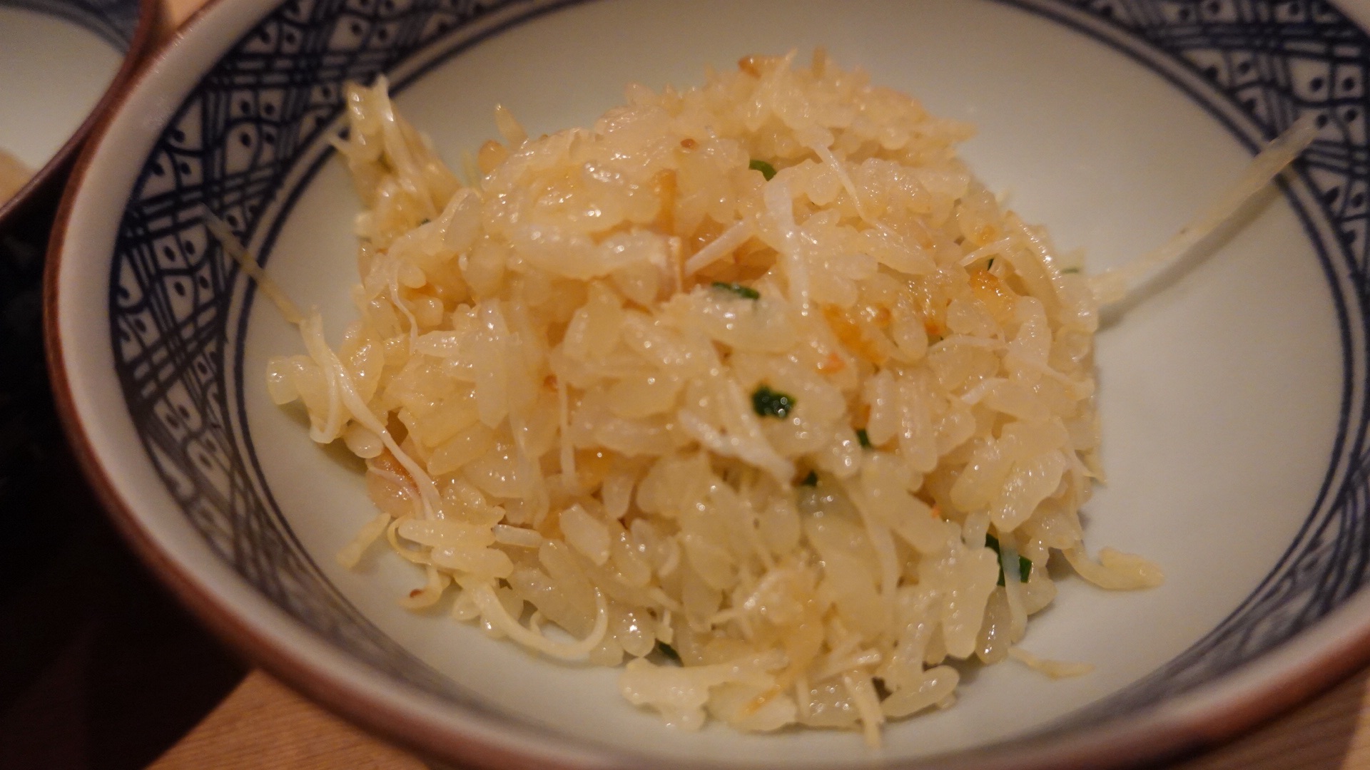 素揚げした桜えびは香ばしく香りが鮮烈。サクッとして餅米とのコントラストもいい感じ。