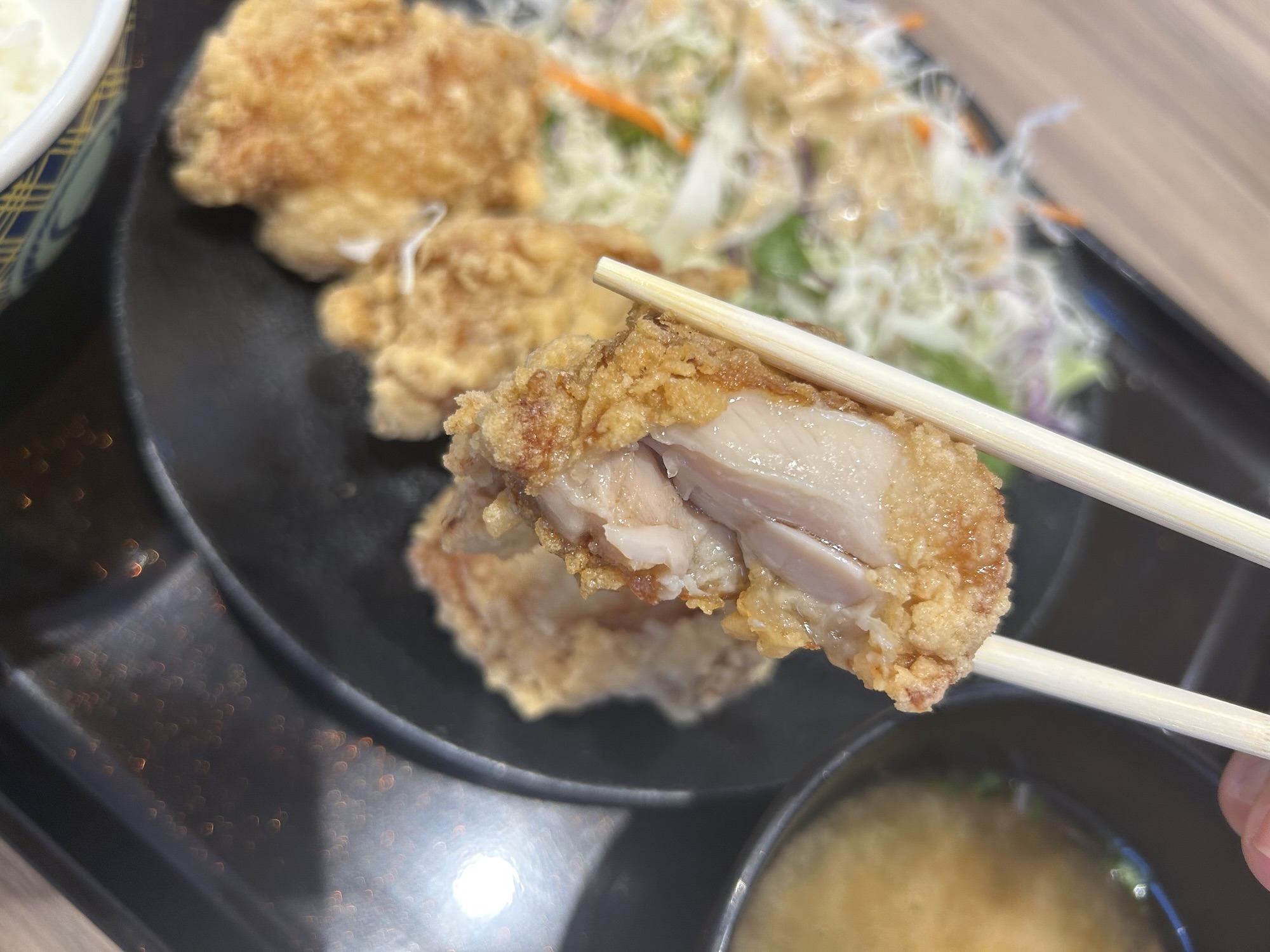 どうしても吉野屋と言うと「牛丼を食べないといけない」プレッシャーや「牛丼を食べないと損したかも」みたいな感情になるが、この唐揚げがあると牛丼以外の理由で訪問してもいいかもと思ったり。