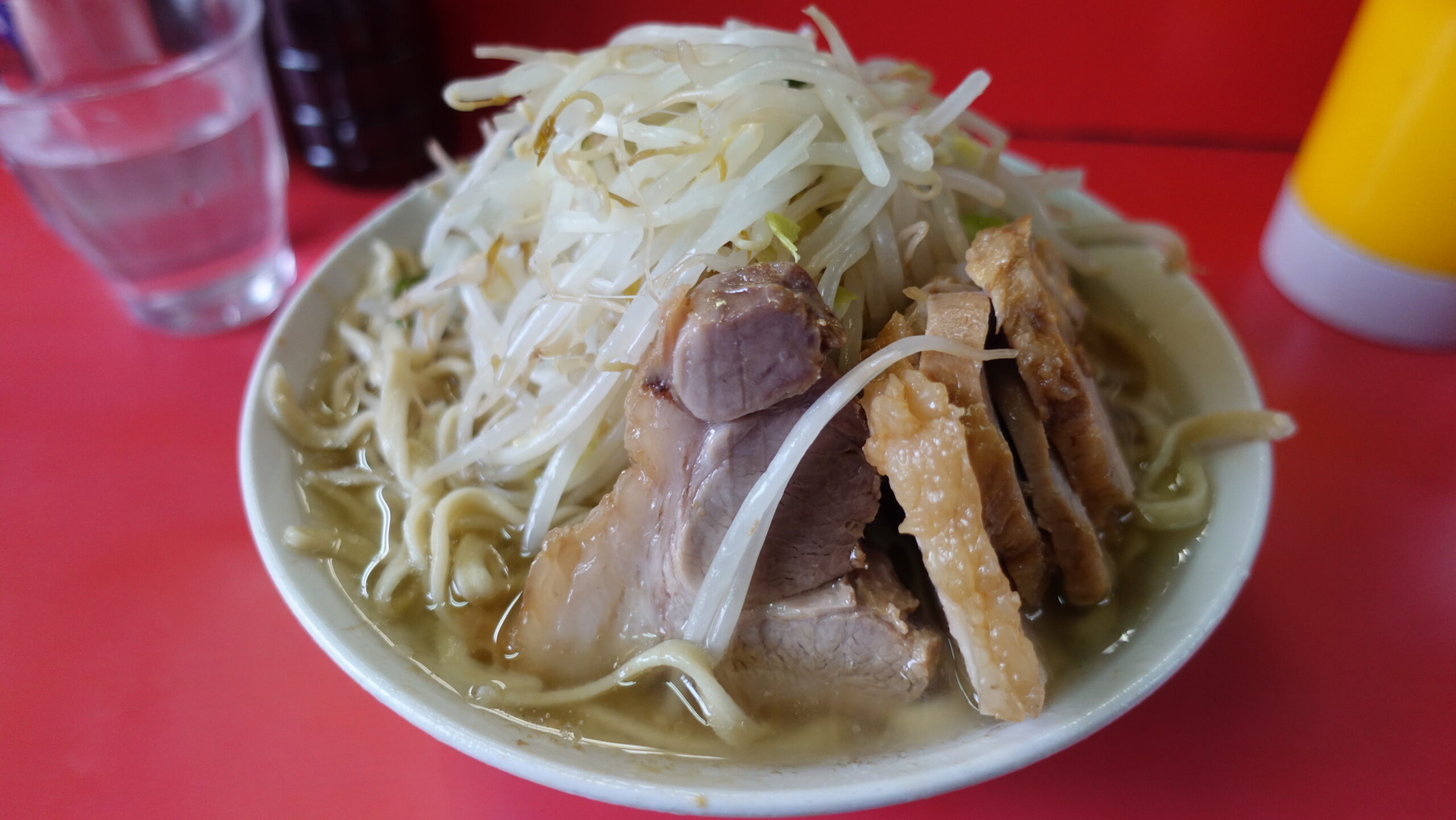 創業は1968年。東京都港区三田に位置し、今や全国各地に暖簾分けされた店舗が存在するが、その始まりの地であり、二郎文化の発信源でもある。