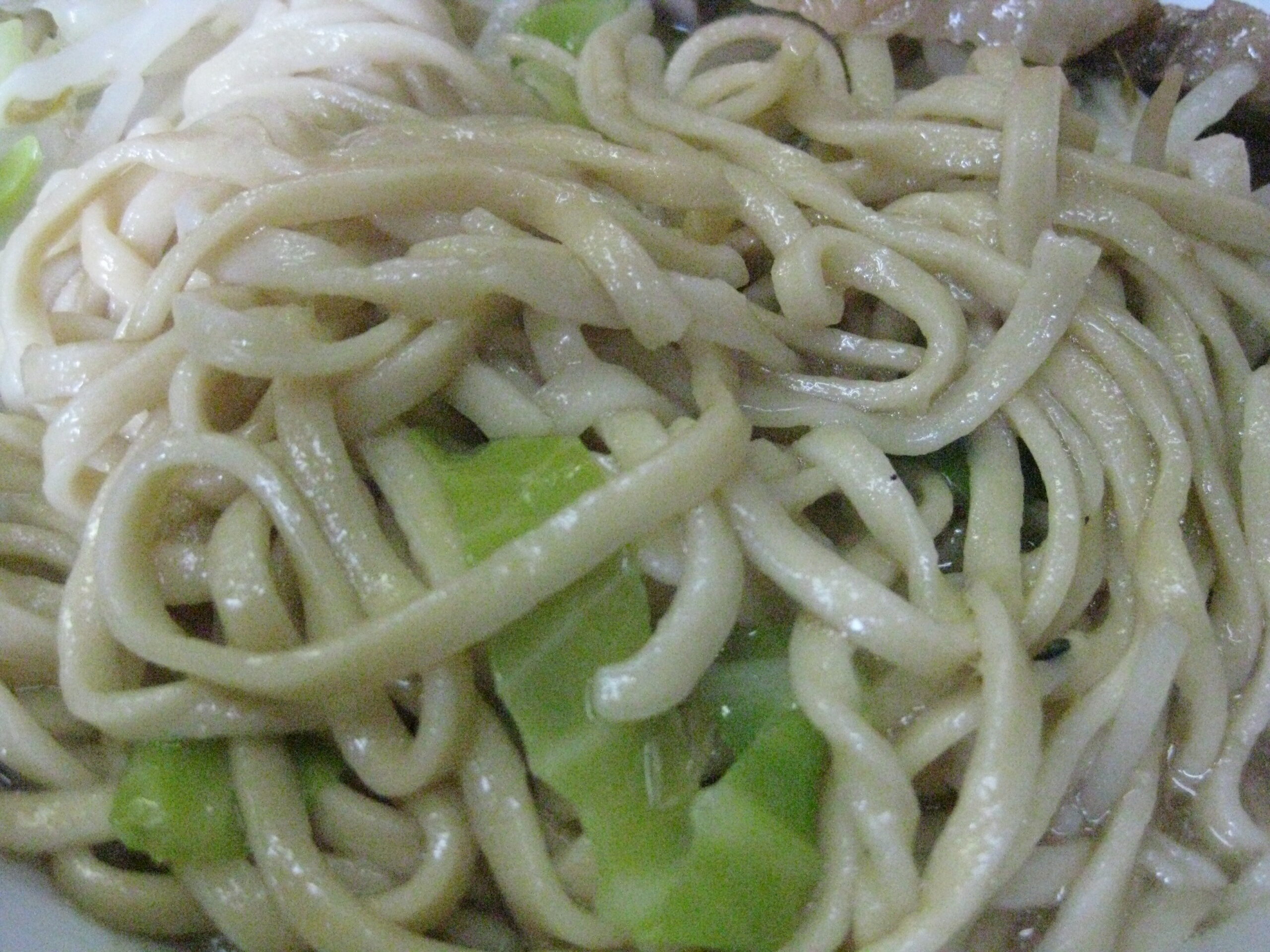 ムチムチの太平打ち麺。醤油、ニンニクガッツリ。微乳化スープはいつも以上に刺激的。
