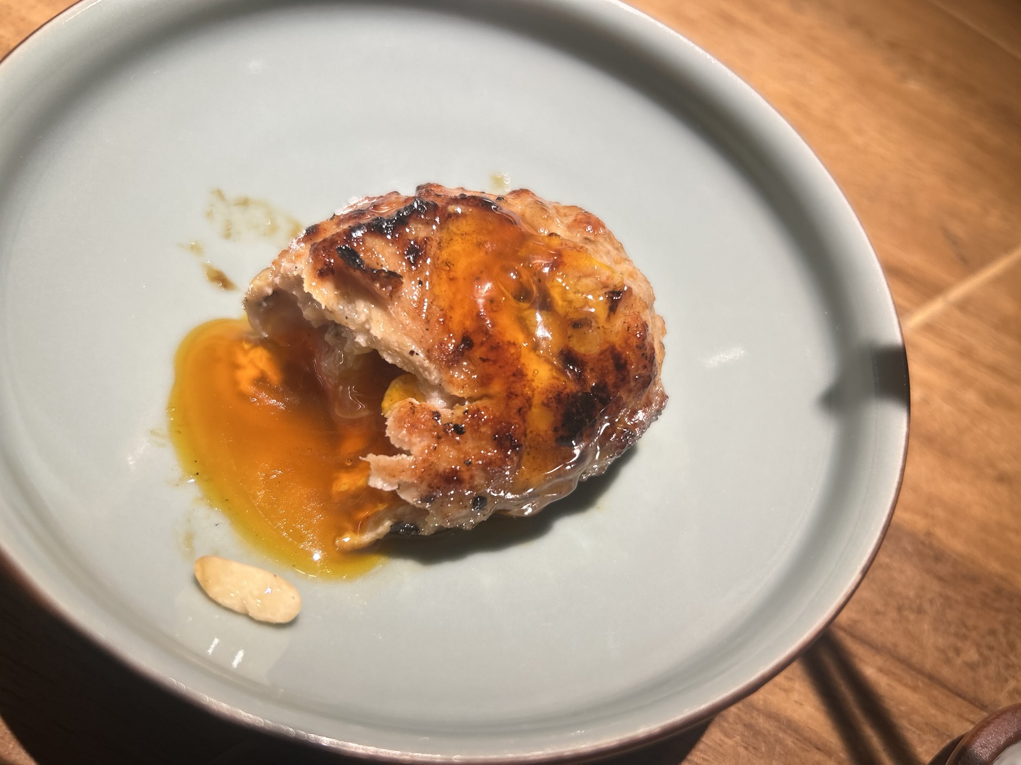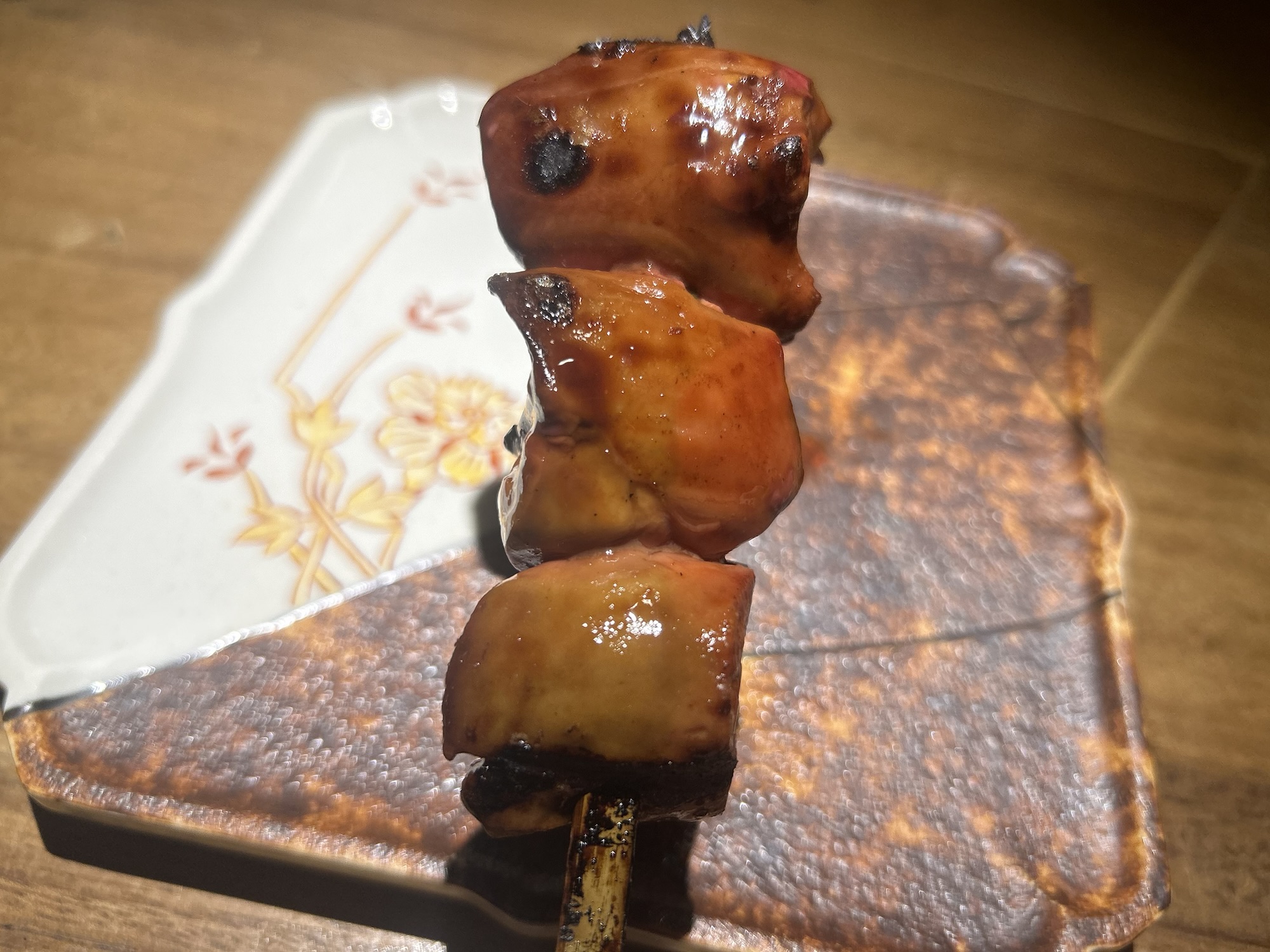 動く部位なので筋肉質で噛むごとに味が湧き出る。タレは甘すぎない程度の醤油が効いたもので旨味と交わる。