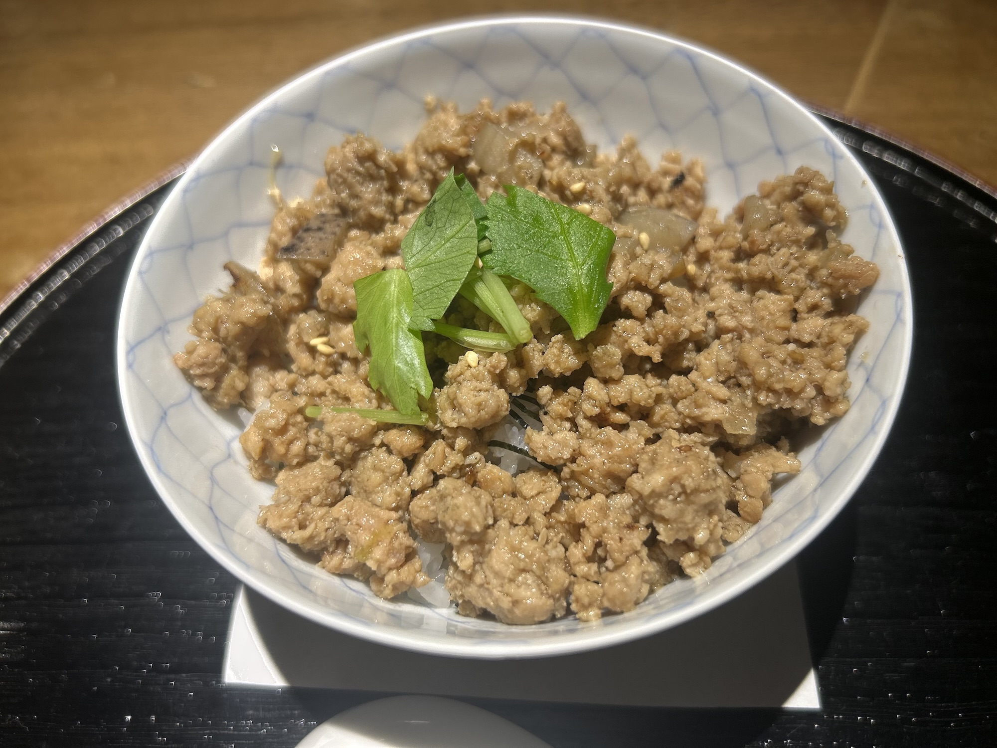 甘辛の味付けのそぼろは薫香が爽やかでご飯が進みます。シンプルに旨いね。